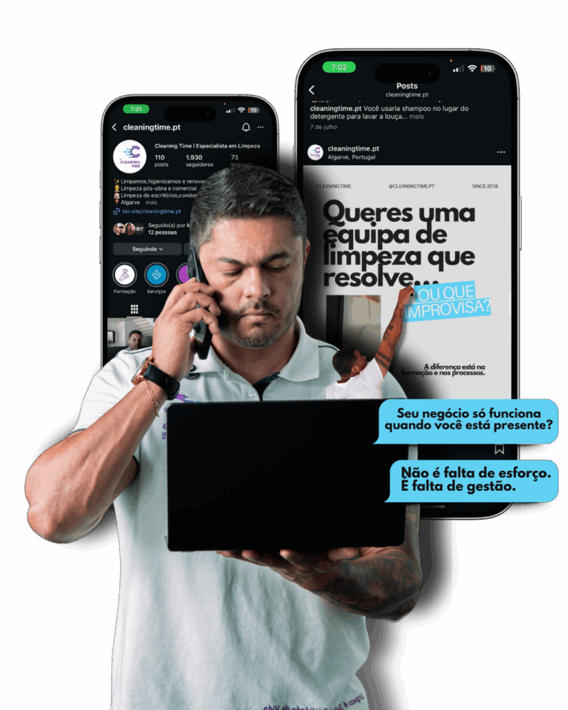 Pela primeira vez, o método usado internamente para gerir mais de 1.500 limpezas mensais com eficiência e qualidade será revelado numa imersão prática e acessível, feita especialmente para quem quer crescer com estrutura sem depender só de si.